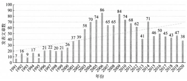 图1 1991-2020年地区主义主题文章年度发表趋势图