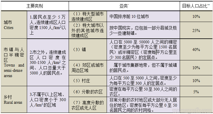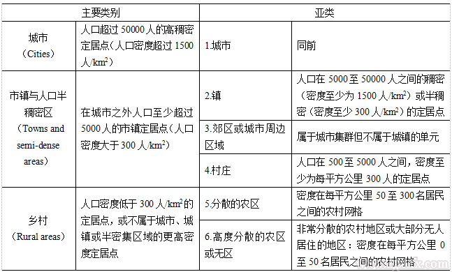 表1 国际机构推荐的城乡人口布局类型划分规则