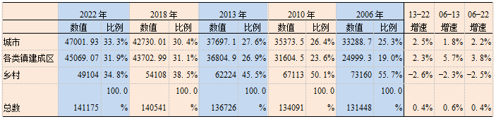 表2 2006-2022年中国城乡人口分布变化