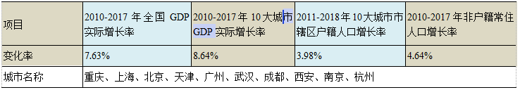 中国大城市发展偏离均衡水平,呈现过度扩张态势。按Henderson的研究所提供的关于合理城市首位度的判断指标,中国前10位大城市的相对规模1990年之前处于适度区间。2011-2018市辖区户籍人口增长率与2010-2017非户籍常住人口增长率显然超过了中国总人口增长率,说明这些超大城市的首位度在继续增长。2010-2017年间这些城市的GDP增长率也快于全国GDP增长率,说明其经济的首位度也在提高。